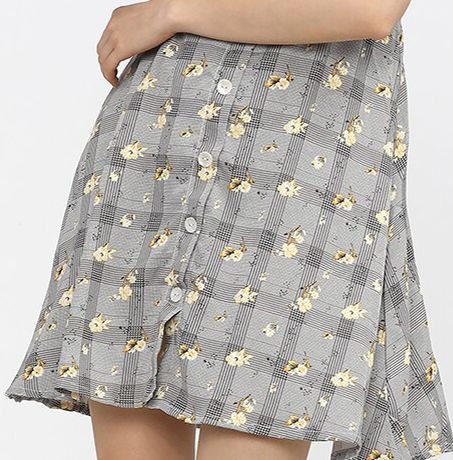 - Above knee length with flared hem
