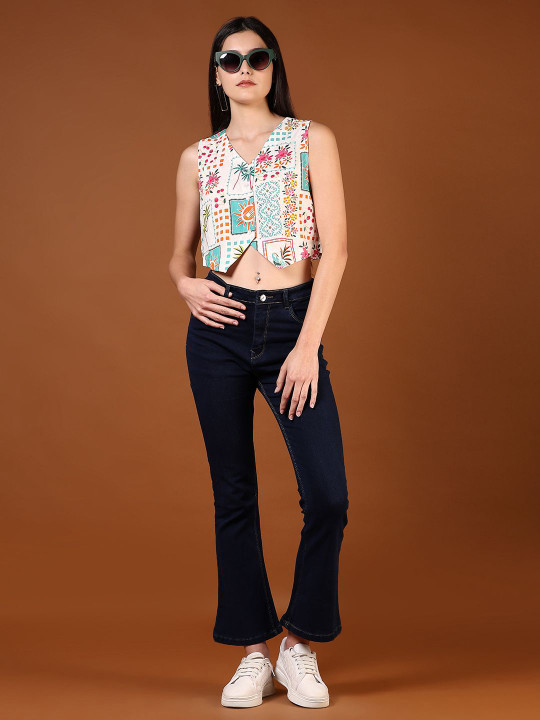 Pair this white floral regular top with denim jeans, trousers, or skirts for a fresh and effortless everyday look. Add flats for a casual vibe or heels for a smart casual outfit.
