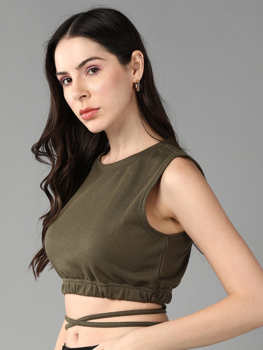 Roadster Women Mustard Yellow Solid Round Neck Top