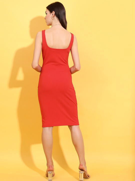 Red Solid Sheath Dress