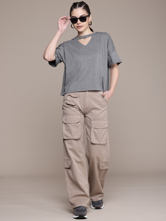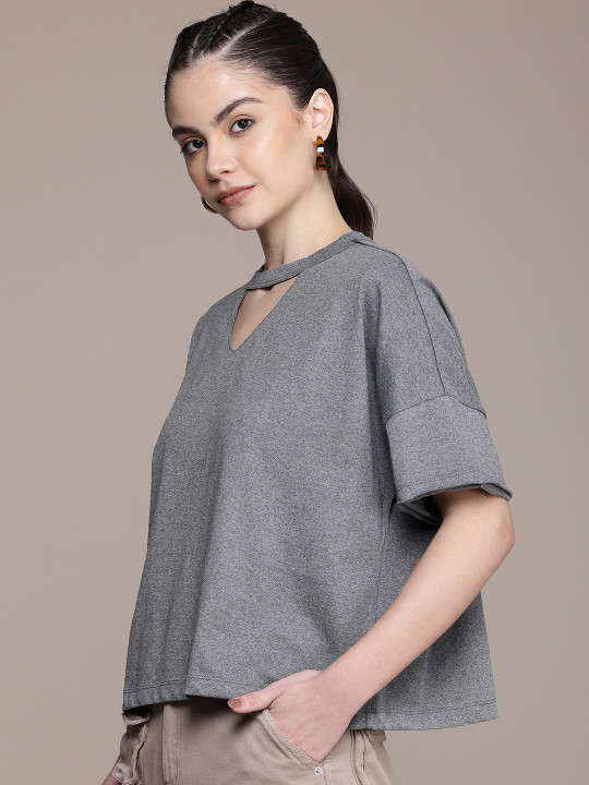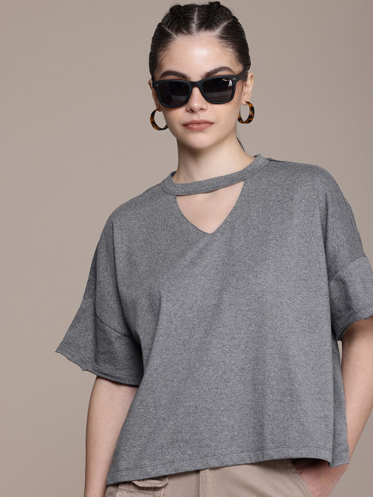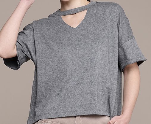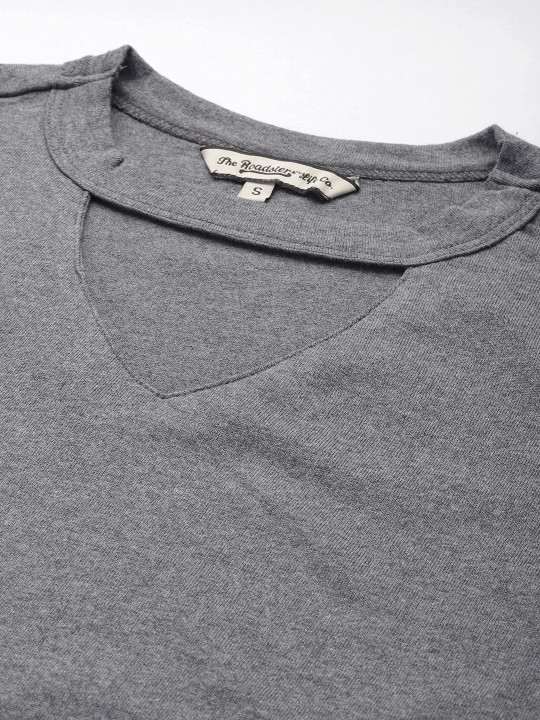 The Life Co. Solid Drop Shoulder Sleeves Cut Out Top