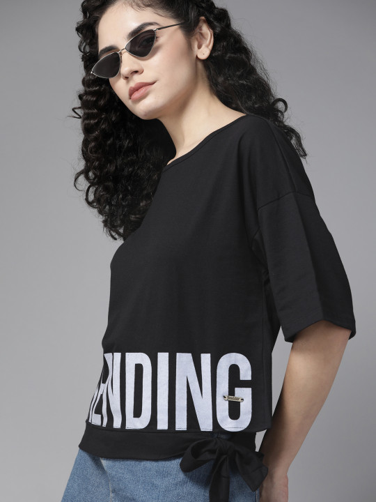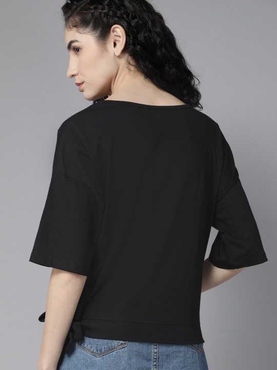 Black Typography Print Top