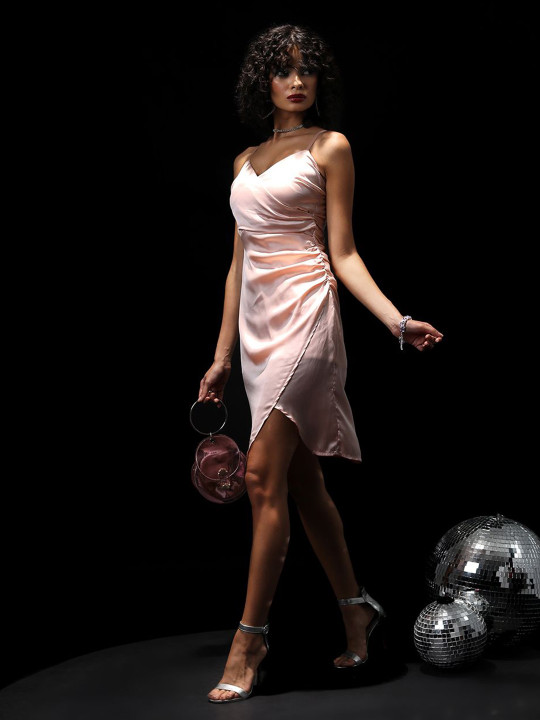Peach Solid Wrap Dress