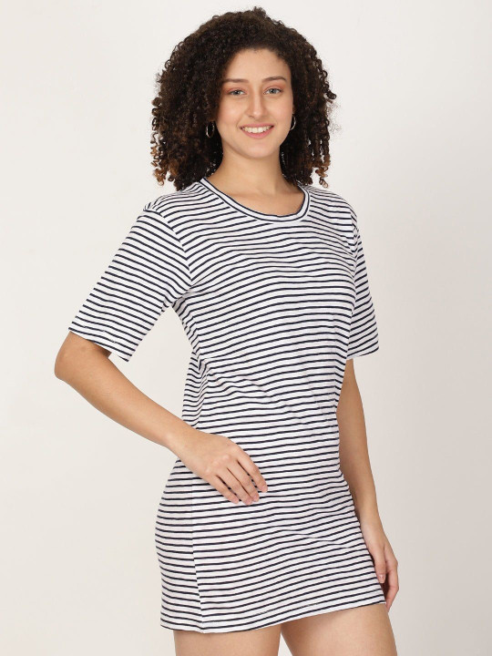 Women Striped Printed Round Neck T-Shirt Mini Dress